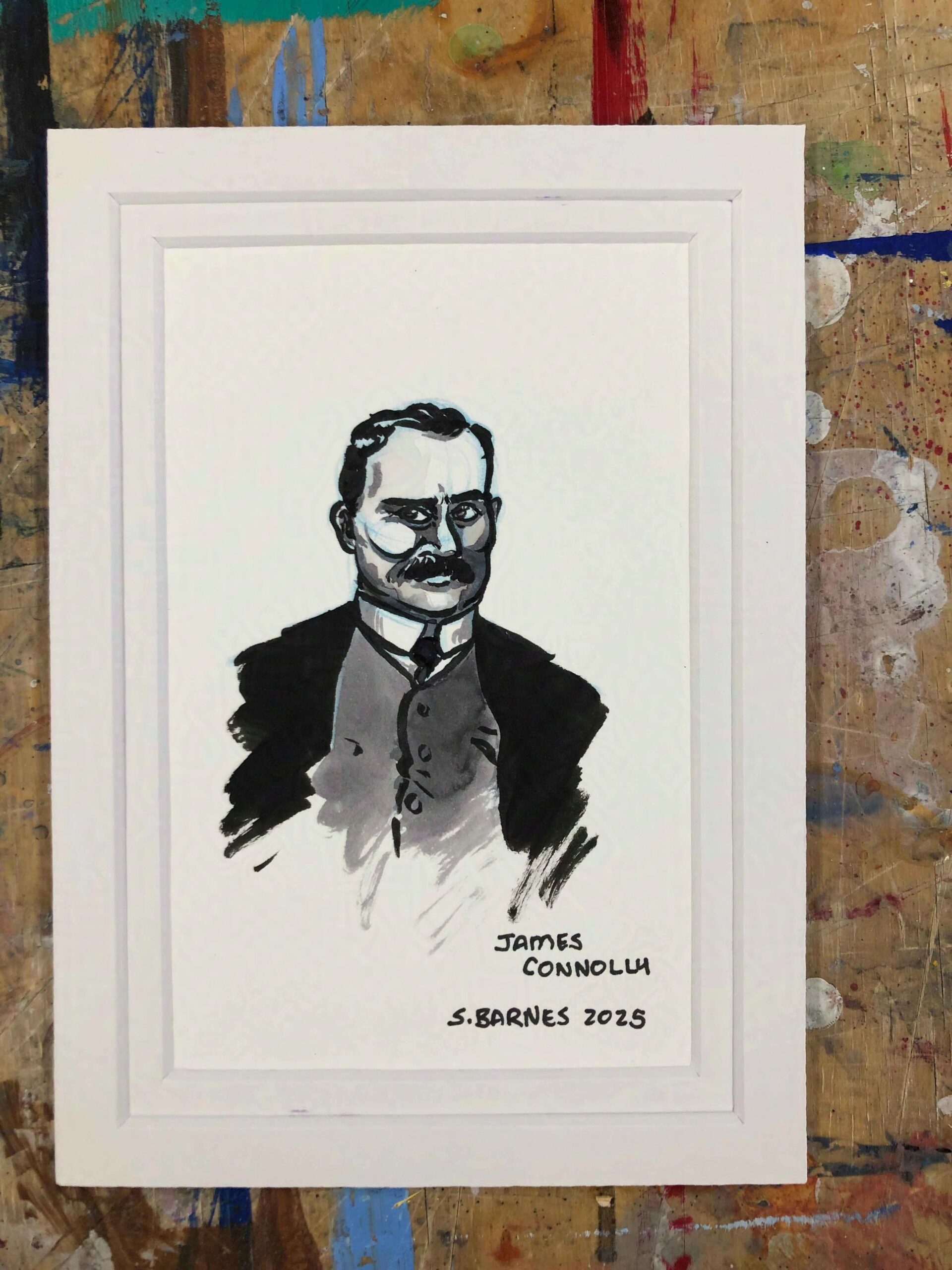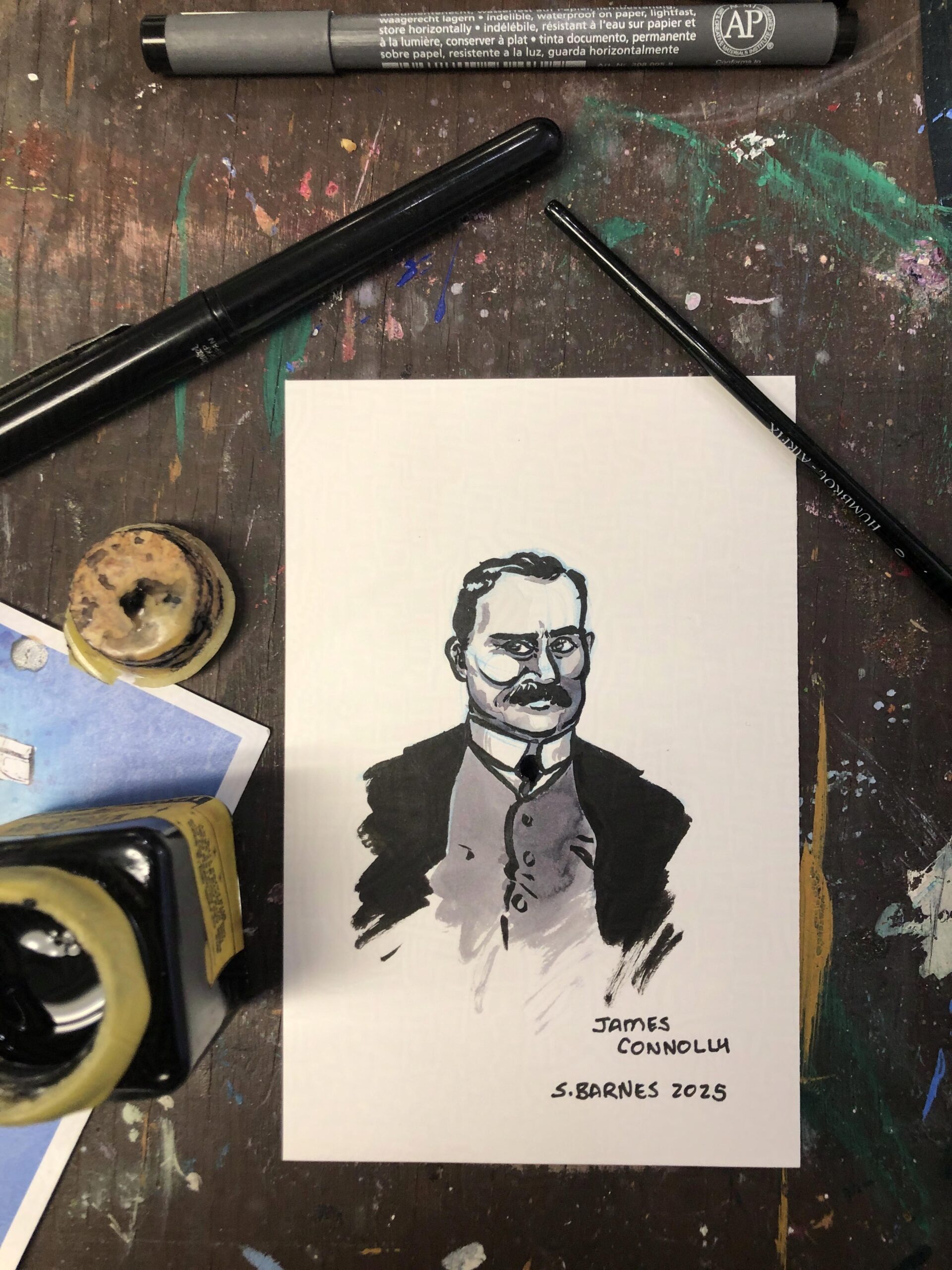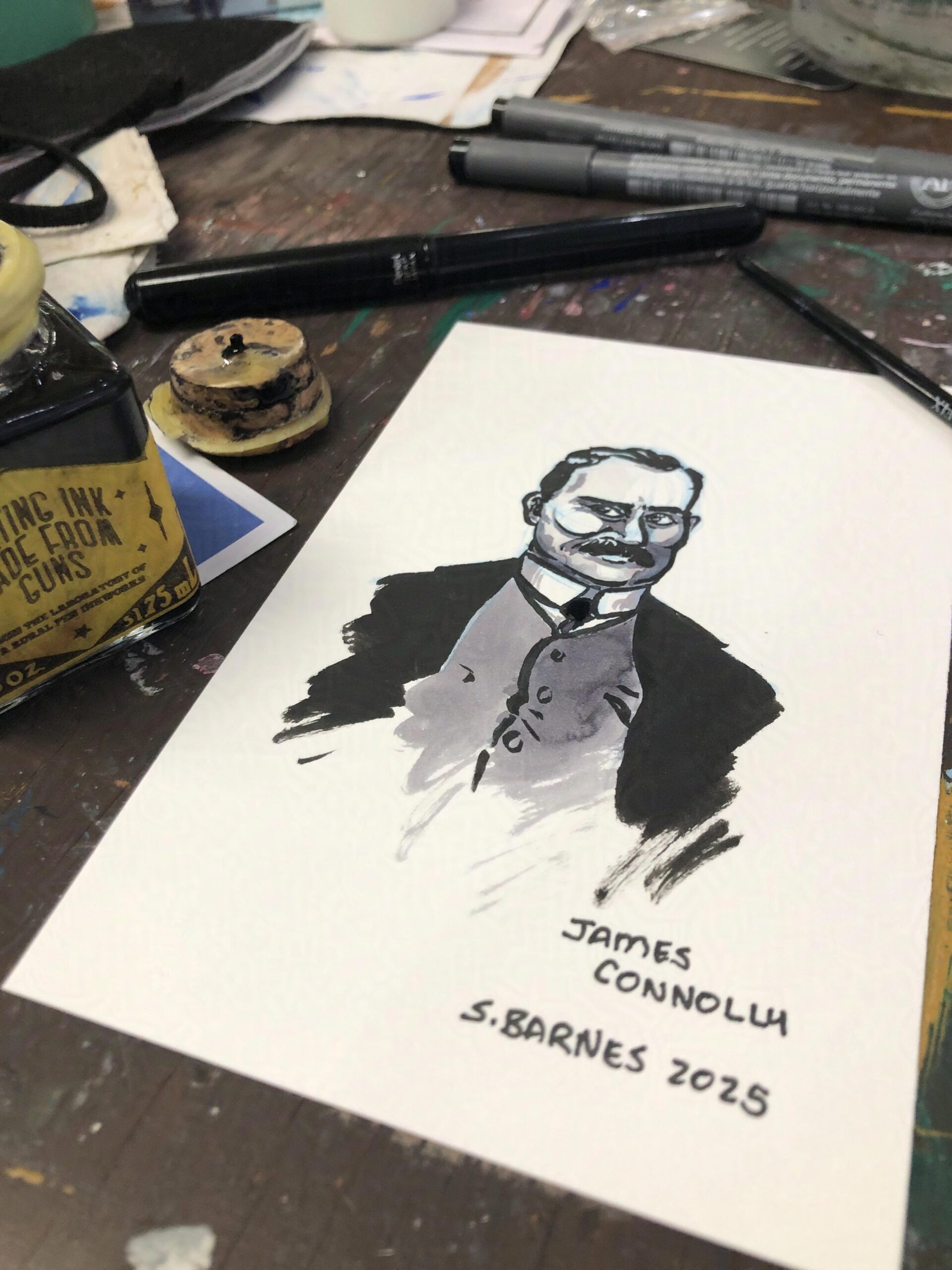 I recently found the work of artist Thomas Little aka A Rural Pen, who makes writing ink from dissolved guns, and was instantly in love. I knew I had to grab a bottle, and to kick off using this gorgeous grey-purple, I did portraits of three people whose work I also admire. James Connolly was an Irish socialist and advocate for Irish republicanism and worker’s rights around the world, if you haven’t heard of him, I recommend looking him up. There’s a great Dropkick Murphys song about his involvement in the 1916 Easter Uprising.