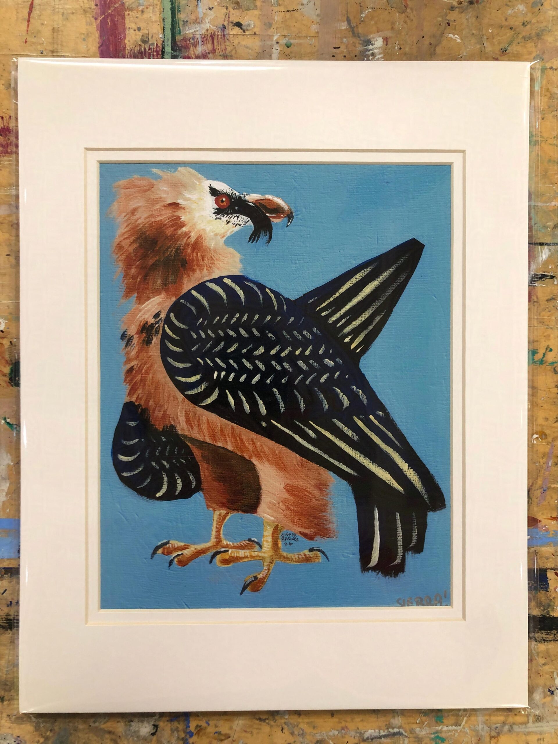 The bearded vulture, also called the Lammergeier, is one of my favorite birds. Their striking appearance, with the distinctive bristly black facial feathers and bright red and gold eyes, combined with their unique diet of BONES make them a subject I return to over and over again. It’s been a minute since I’ve painted them, so I decided they would be the subject of my first painting of 2026.