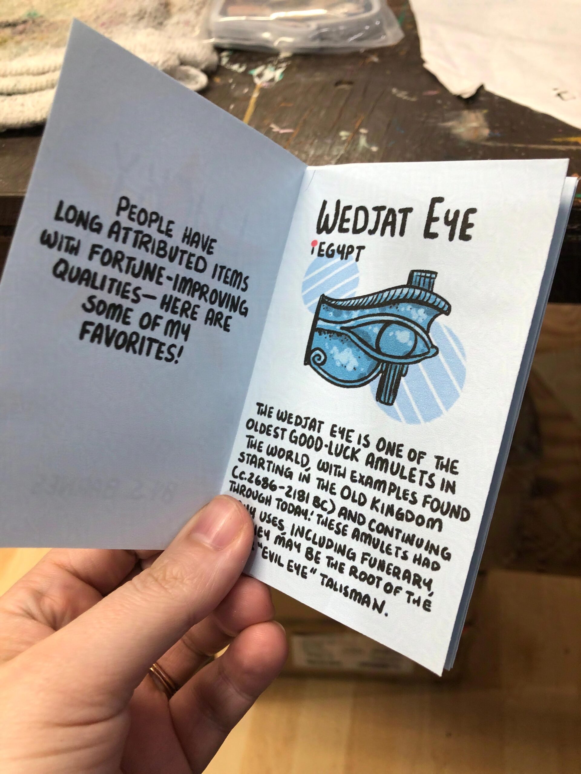 A mini zine chock full of my personal favorite lucky objects from around the world! From the Wadjet Eye to the Mercury Dime, these charms are sure to turn your fortunes around. Who knows, maybe this zine itself will make your day luckier?